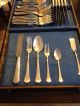 2 Suppenlöffel, Länge ca. 21 cm 1 Gabel, Länge ca. 20,5 cm 1 Vorlegegabel, Länge ca. 19 cm (100 er Silber) 5 Kaffeelöffel, Länge ca. 14 cm 4 Kuchengabeln, Länge ca. 16 cm 5 Mokkalöffel, Länge ca. 12,5 cm