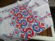 Tischdecke rot blau bestickt Leinen weiss Han...
