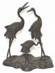 Bronzefigur Kraniche Paar mit Jungem Japan um...